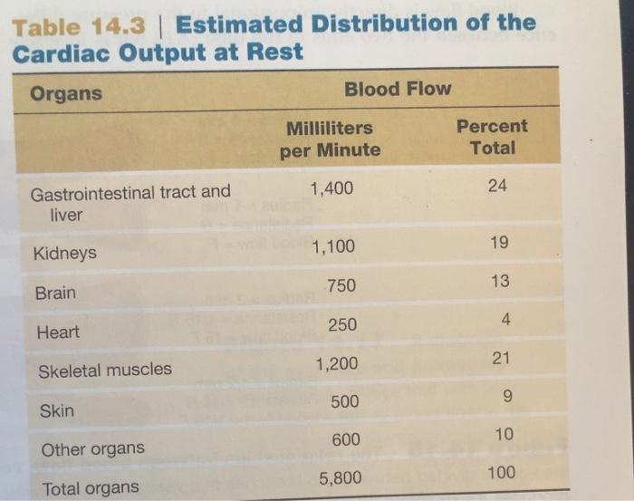 Changes In Organ Blood Flows As A Percentage Of Cardiac Output During Download Table